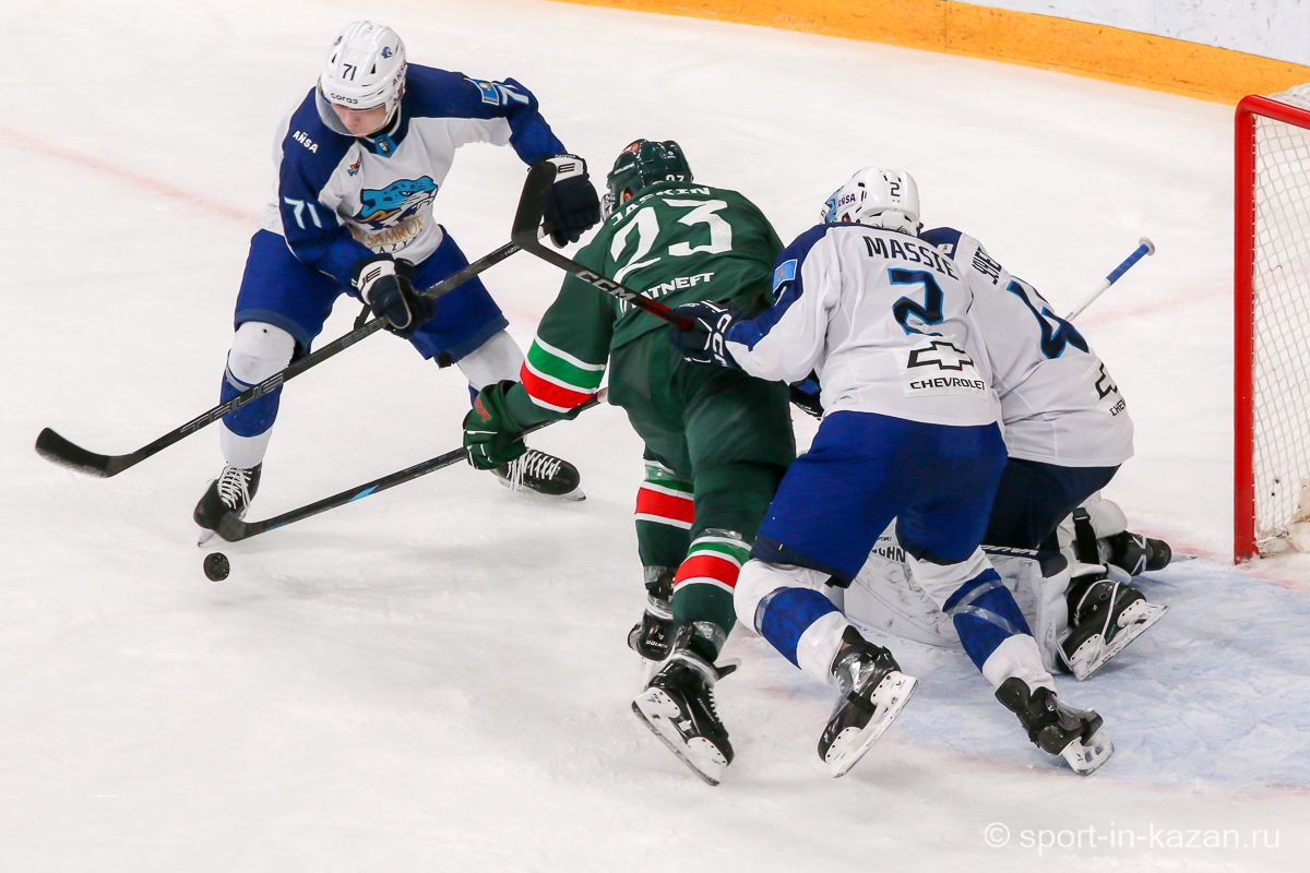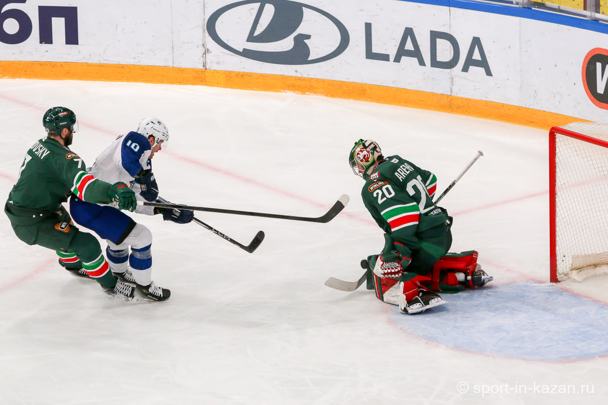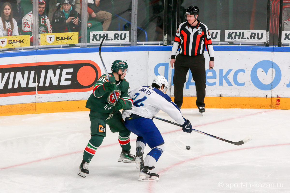 Хозяева открыли счёт на 31-й минуте: Александр Хмелевский забросил шайбу с передач Семёнова и Яшкина при игре 5 на 5. Через две минуты Григорий Денисенко увеличил преимущество, реализовав передачу Брэндона Биро. В третьем периоде Макс Уиллман отквитал одну шайбу для Барыс в большинстве (51:29), но Артём Галимов установил финальный счёт 3:1 в пустые ворота.
