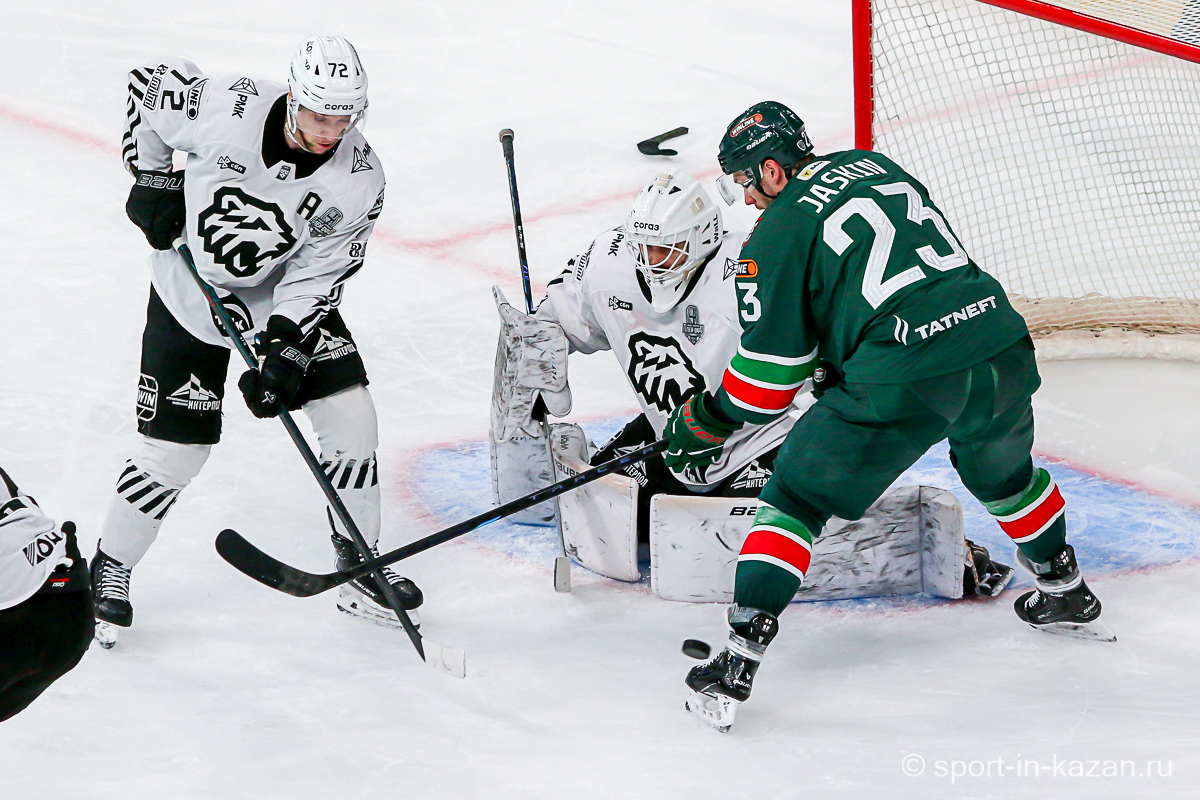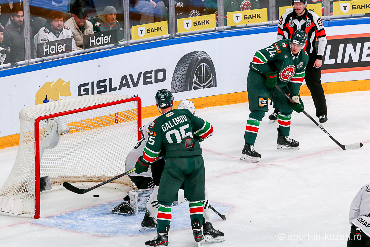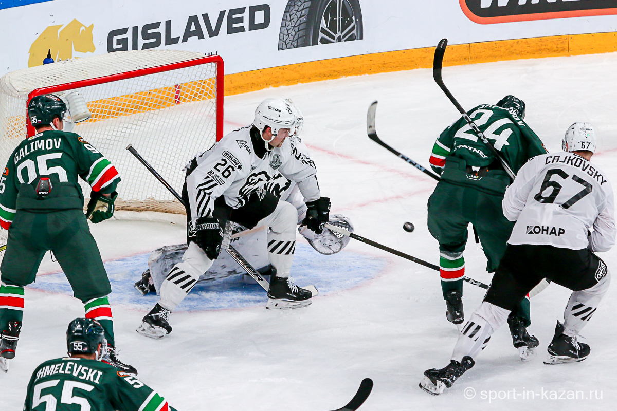 Ближе к концу второго периода что-то впереди у «Ак Барса» начало получаться и в игре в тело они прибавили. Данису Зарипову Первому (в «Ирбисе» играет ДЗ Второй) это явно нравилось. Последнюю пятиминутку хозяева начали затяжной позиционной атакой, в ходе которой Лямкин и Барабанов из выгодных ситуаций палили много выше ворот, но в итоге подопечные Евгения Корешкова стали обороняться вшестером и судьи это увидели. Штурм разбушевавшегося «Ак Барса» вышел впечатляющим и венцом его стало попадание Лямкина в …боровшегося за позицию на «пятаке» Яшкина, хотя Николаев в этом эпизоде лежал на льду и ворота были пустыми. Гол назревал, но гости выстояли и сохранили счет первого периода и ко второму перерыву. Тем не менее этот период подарил поклонникам казанской команды надежду.