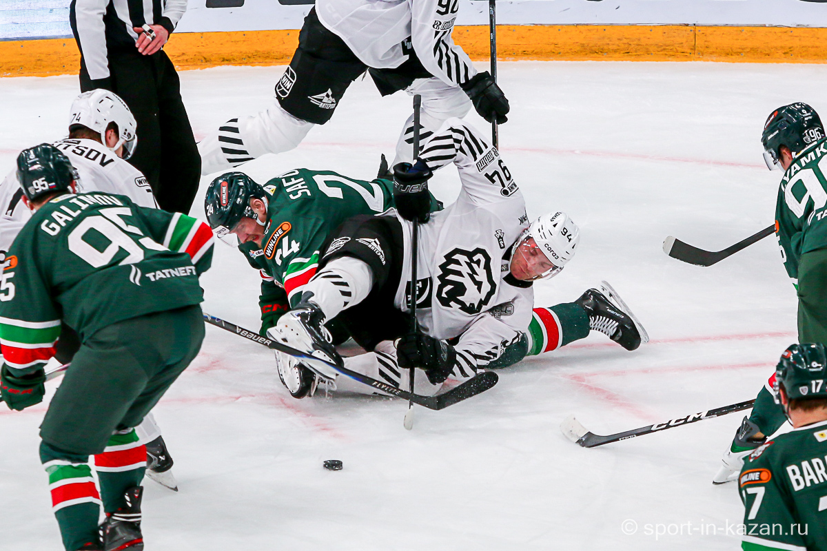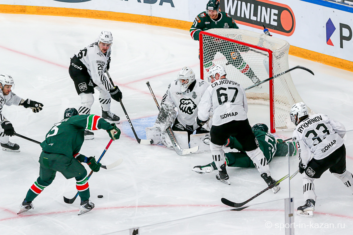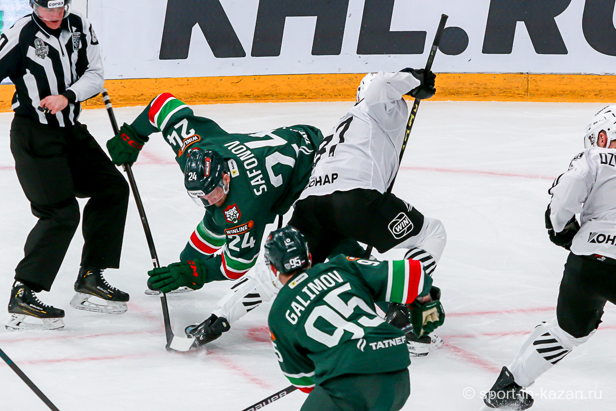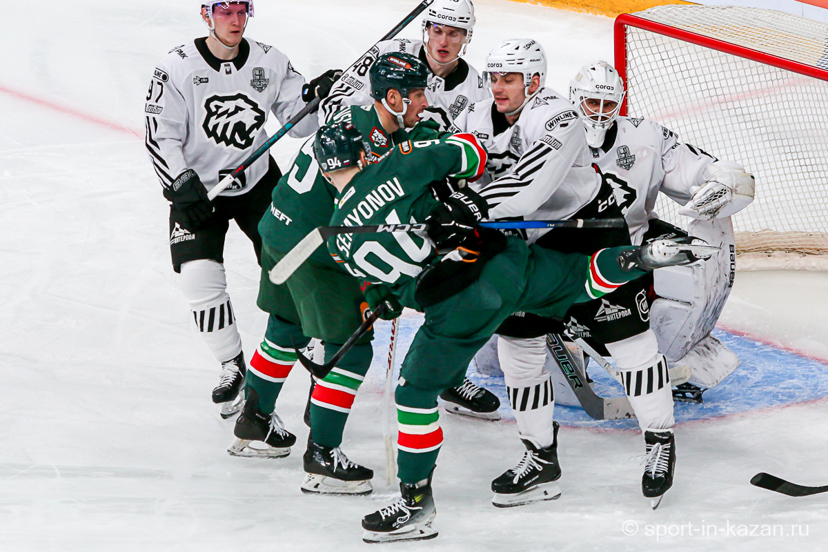 Ближе к концу второго периода что-то впереди у «Ак Барса» начало получаться и в игре в тело они прибавили. Данису Зарипову Первому (в «Ирбисе» играет ДЗ Второй) это явно нравилось. Последнюю пятиминутку хозяева начали затяжной позиционной атакой, в ходе которой Лямкин и Барабанов из выгодных ситуаций палили много выше ворот, но в итоге подопечные Евгения Корешкова стали обороняться вшестером и судьи это увидели. Штурм разбушевавшегося «Ак Барса» вышел впечатляющим и венцом его стало попадание Лямкина в …боровшегося за позицию на «пятаке» Яшкина, хотя Николаев в этом эпизоде лежал на льду и ворота были пустыми. Гол назревал, но гости выстояли и сохранили счет первого периода и ко второму перерыву. Тем не менее этот период подарил поклонникам казанской команды надежду.
