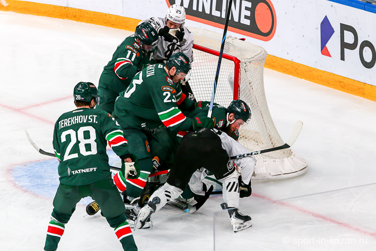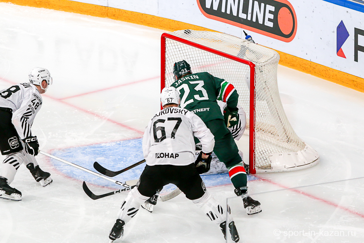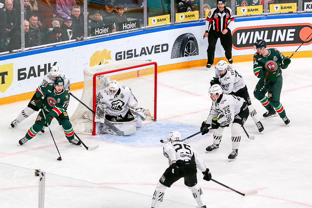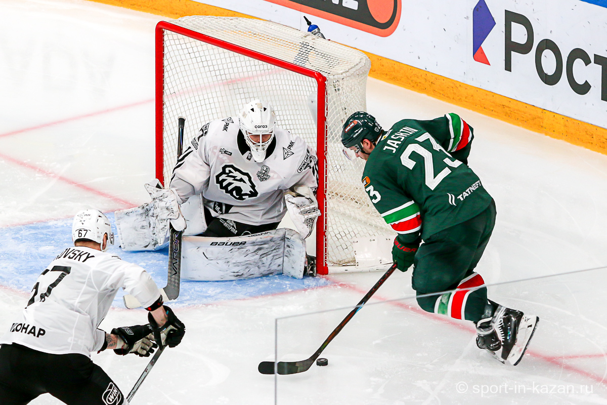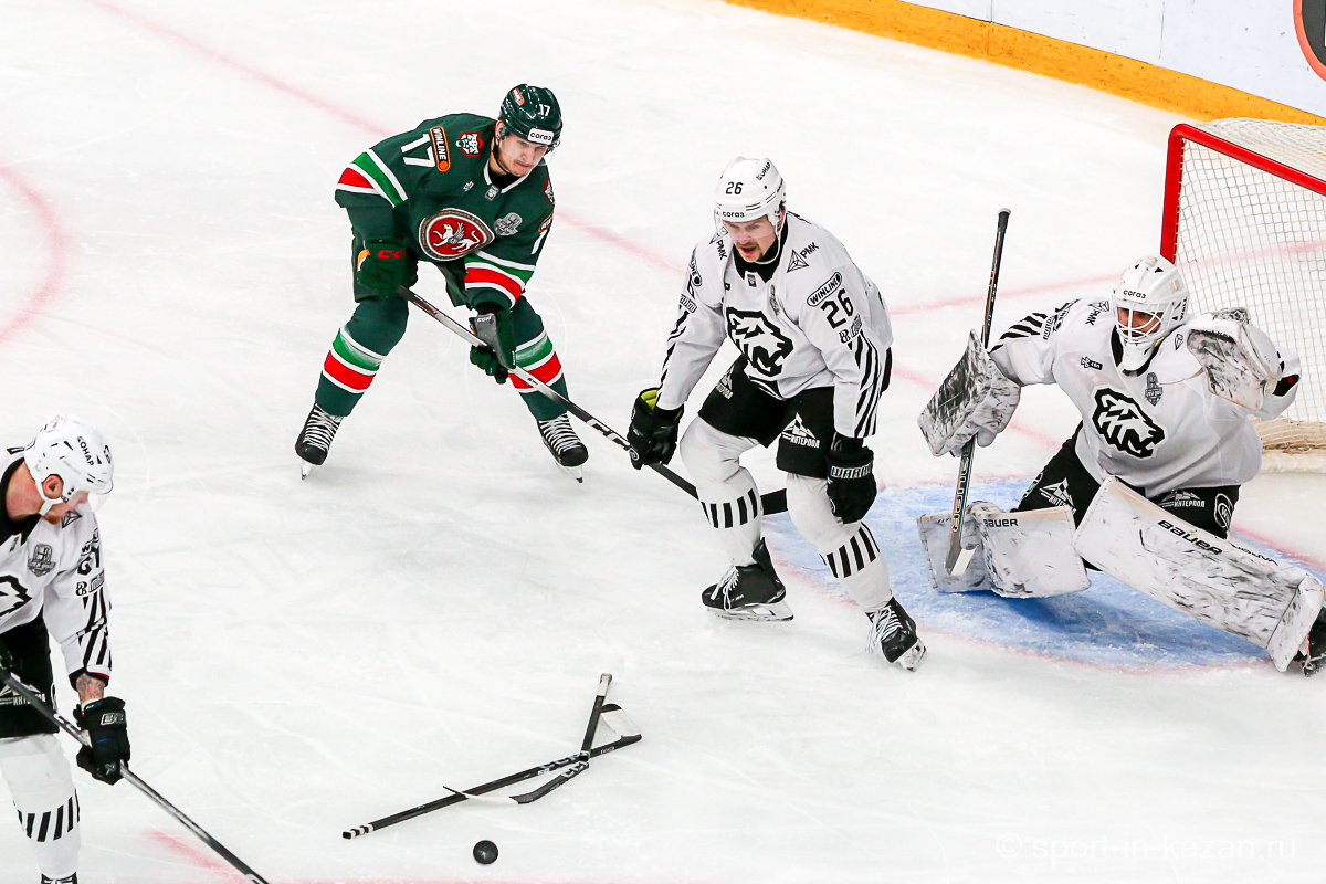 Через четыре минуты с примерно такой же позиции мог отличиться Денисенко, которому отпасовал Фисенко, но попал прямо в голкипера.  Помимо потенциально голевой передачи чеккер казанцев на первых минутах запомнился хитом против Логана Дэя в качестве своеобразной мести за силовой прием против Денисенко. Еще через минуты не выдержали нервы у Жаркова, ударившего в лицо Миллера и молодец защитник, что не ответил, обеспечив своей команде большинство. При розыгрыше лишнего «барсы» больше уповали на силу чем на хладнокровие и точность – уж больно хотелось им закрепить успех. Уже на исходе большинства Пустозеров не попал по пустым воротам, а когда восстановилась игра в полных составах Яшкин бросился под щелчок Телегина, а Билялов отразил опасный бросок Светлакова.