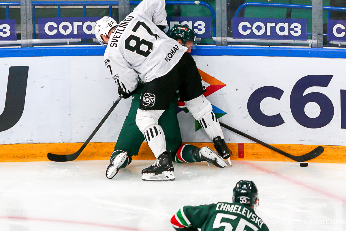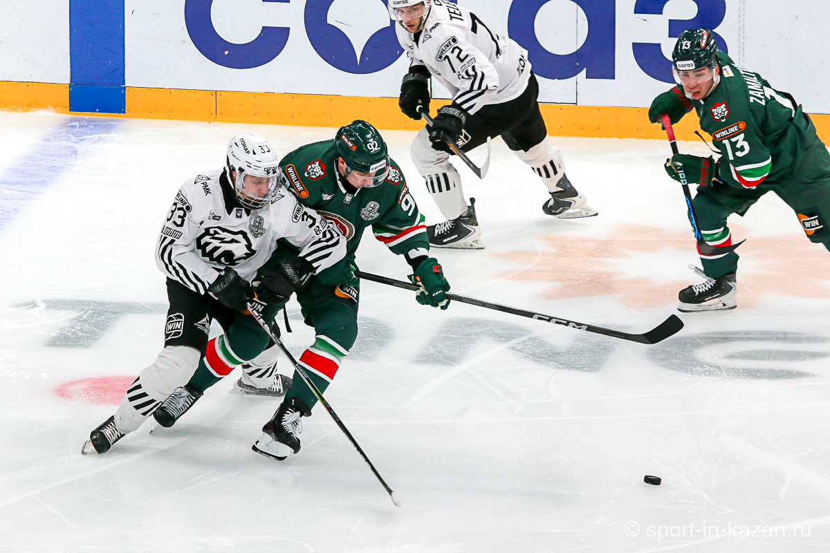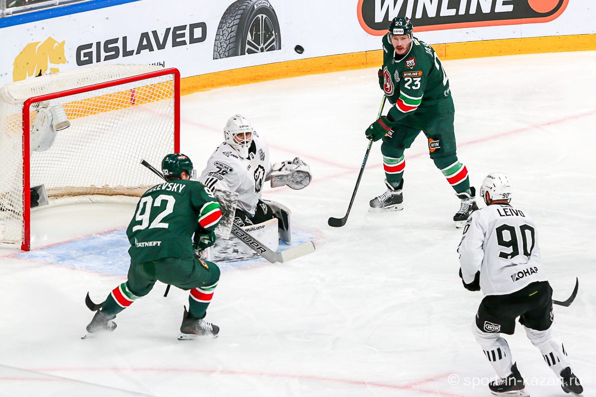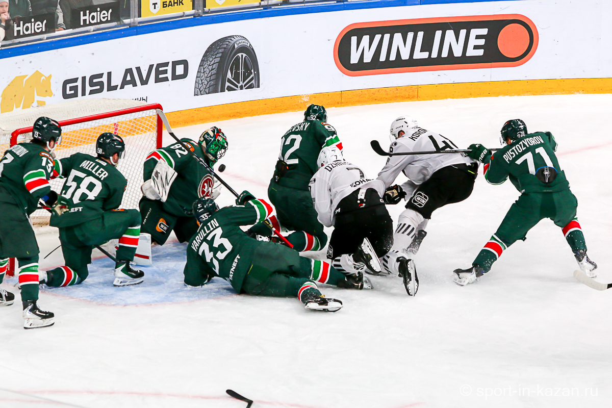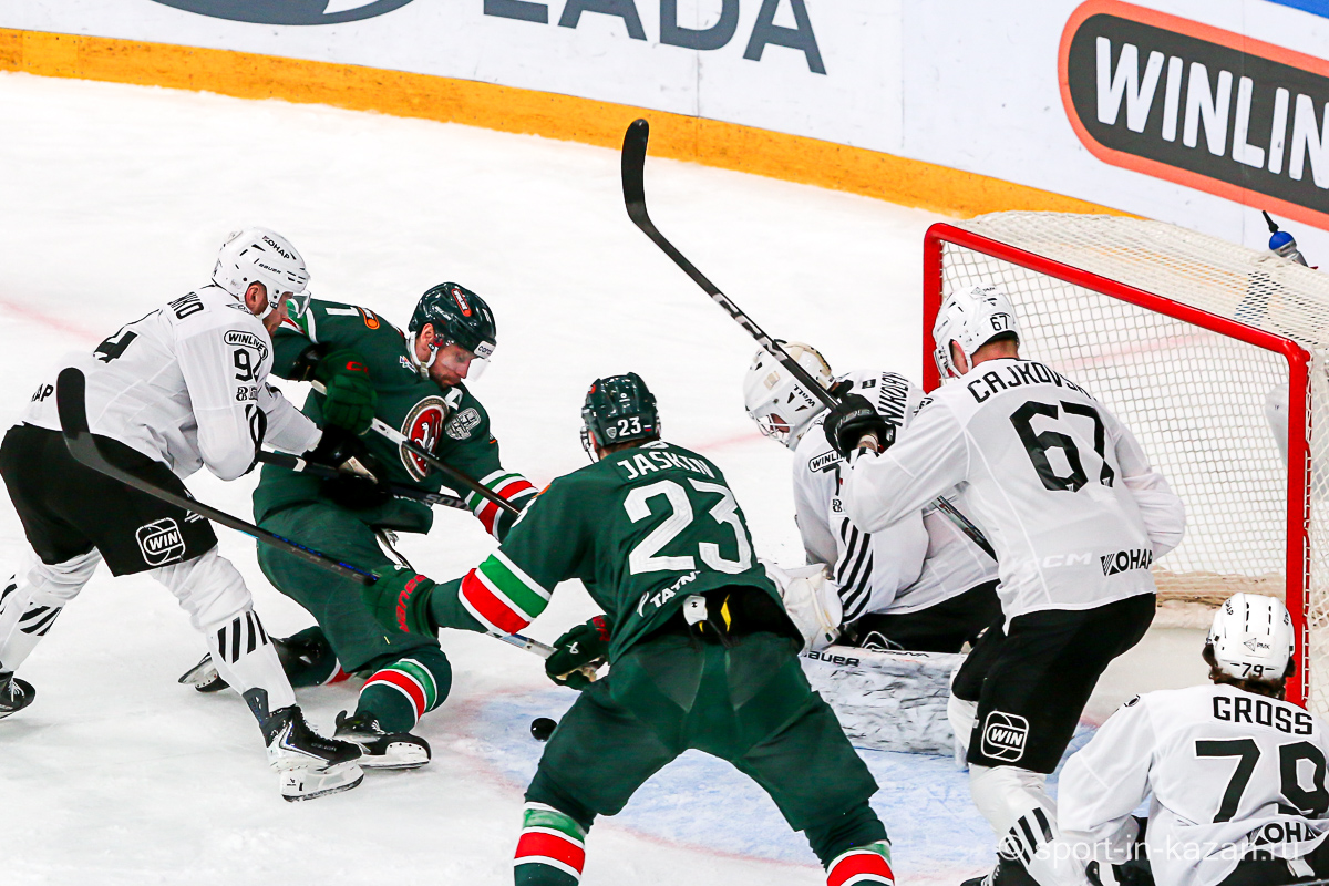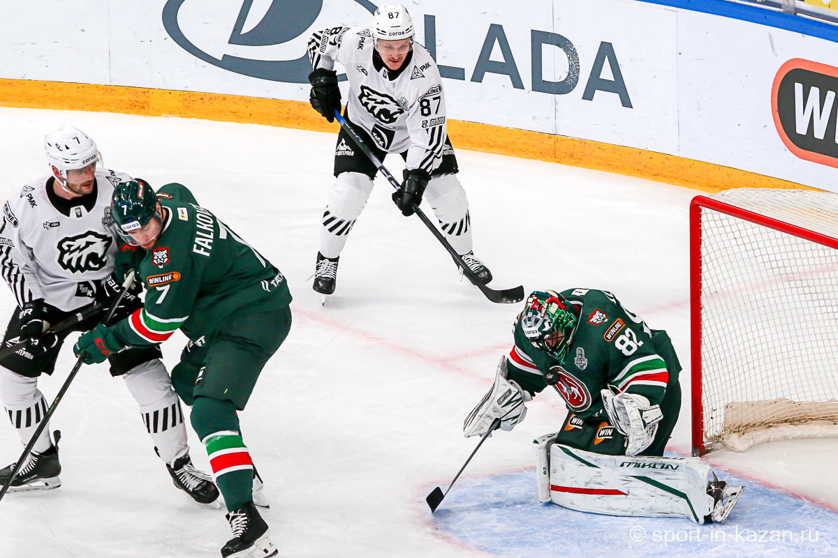 Через четыре минуты с примерно такой же позиции мог отличиться Денисенко, которому отпасовал Фисенко, но попал прямо в голкипера.  Помимо потенциально голевой передачи чеккер казанцев на первых минутах запомнился хитом против Логана Дэя в качестве своеобразной мести за силовой прием против Денисенко. Еще через минуты не выдержали нервы у Жаркова, ударившего в лицо Миллера и молодец защитник, что не ответил, обеспечив своей команде большинство. При розыгрыше лишнего «барсы» больше уповали на силу чем на хладнокровие и точность – уж больно хотелось им закрепить успех. Уже на исходе большинства Пустозеров не попал по пустым воротам, а когда восстановилась игра в полных составах Яшкин бросился под щелчок Телегина, а Билялов отразил опасный бросок Светлакова.