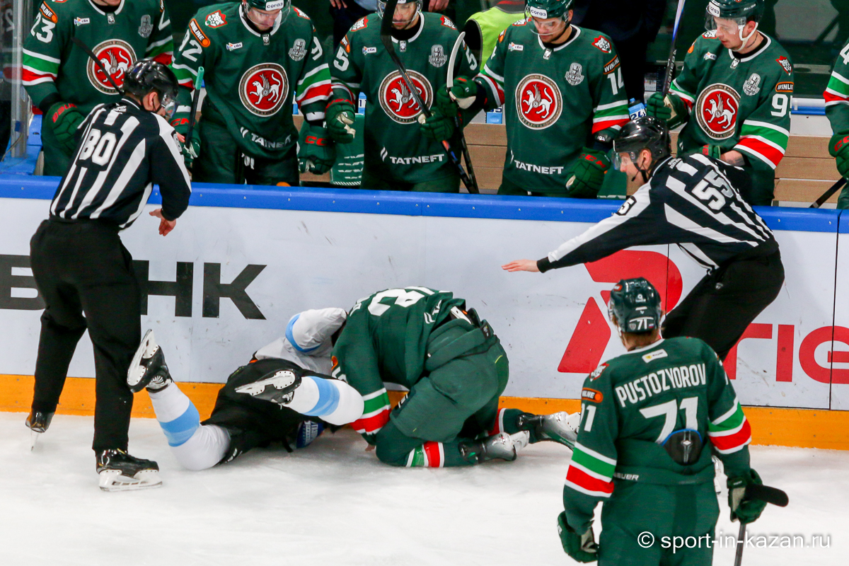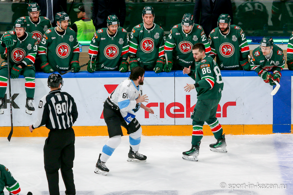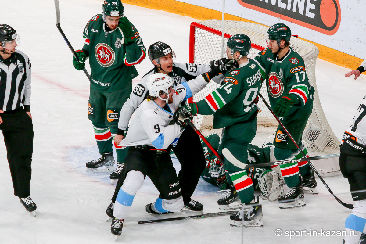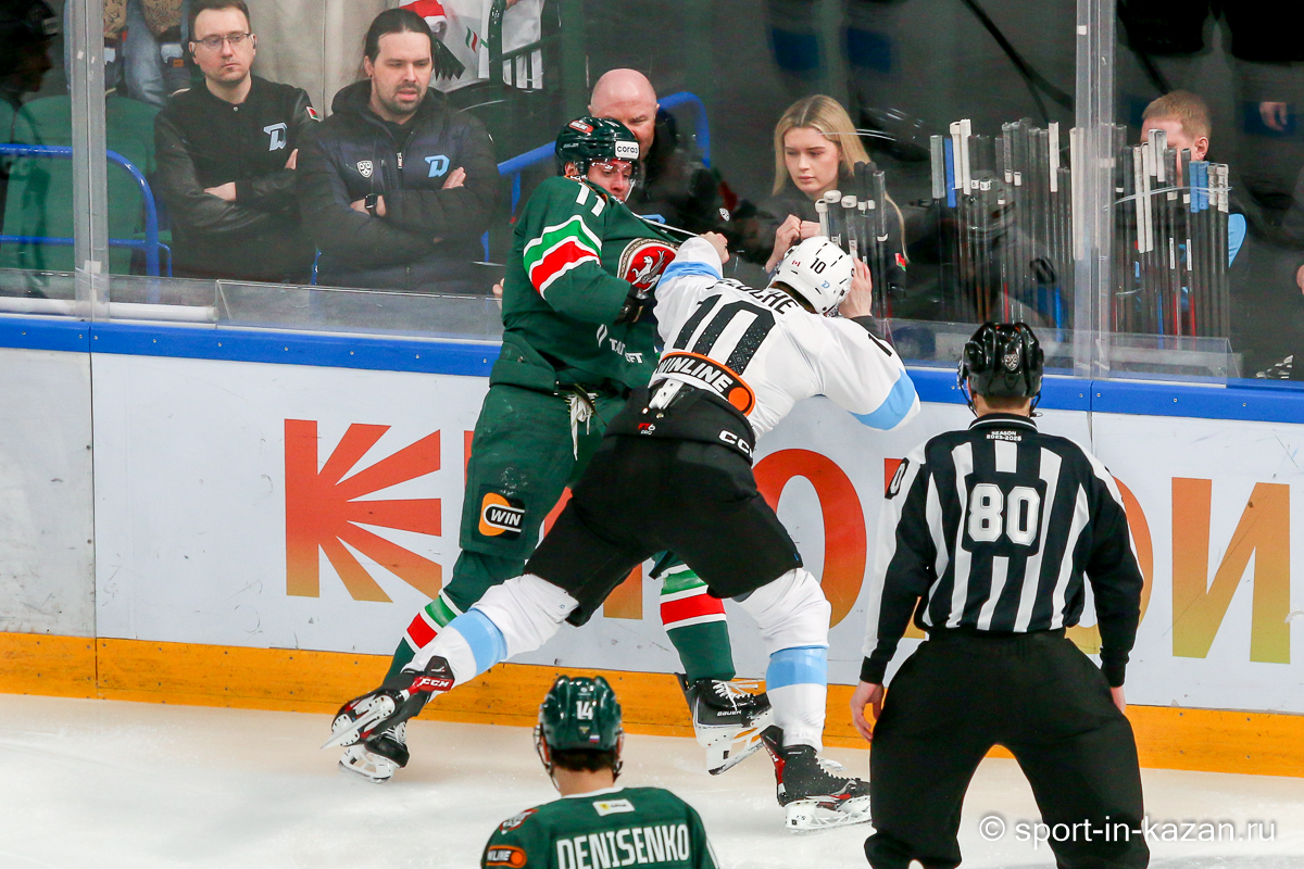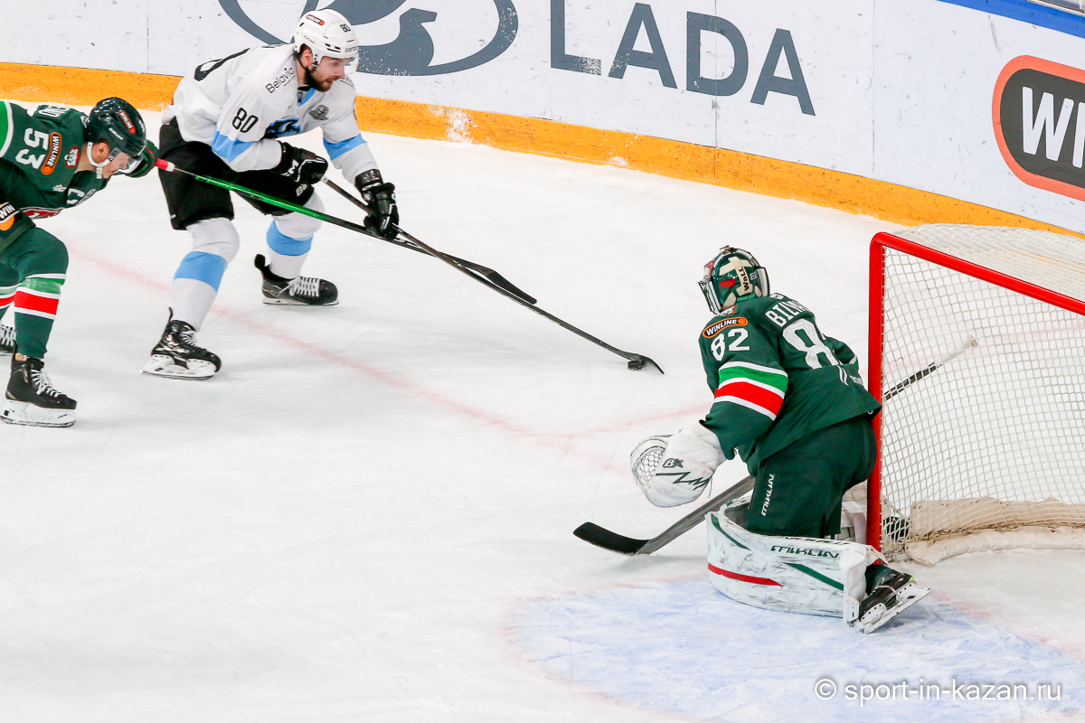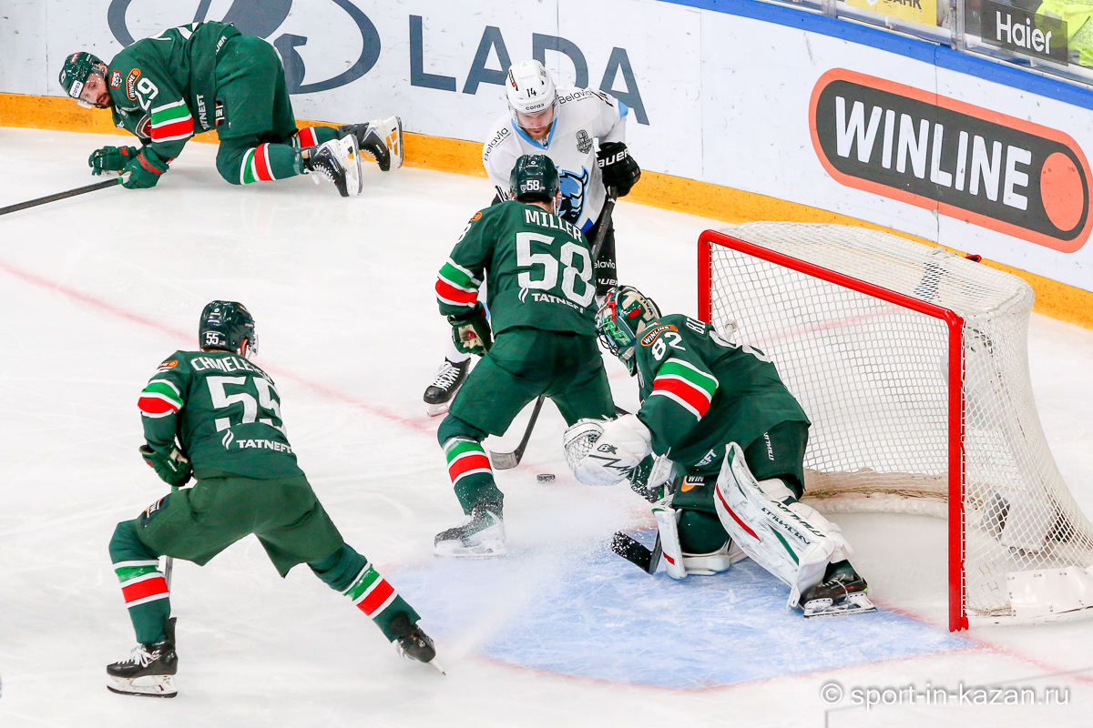 Штаб Квартальнова перетасовал звенья, поставив, в частности, Егора Борикова в  центр  первой тройки к Пинчуку и Бруку. Место в воротах занял Василий Демченко, у «Ак Барса» первым номером вышел Билялов. Как и предполагалось свою «характерность» белорусские «комсомольцы» начали проявлять с самых первых минут встречи. Сначала Мелош вызвал на бой Фисенко, затем очень жестко атаковали Кателевского. Похоже «зубры» вышли на лед не сколько умирать, сколько убивать. Покорившая в сезоне сердца многих болельщиков по всей России Золушка превратилась в тыкву – банду вылезших из пущи хулиганов.
